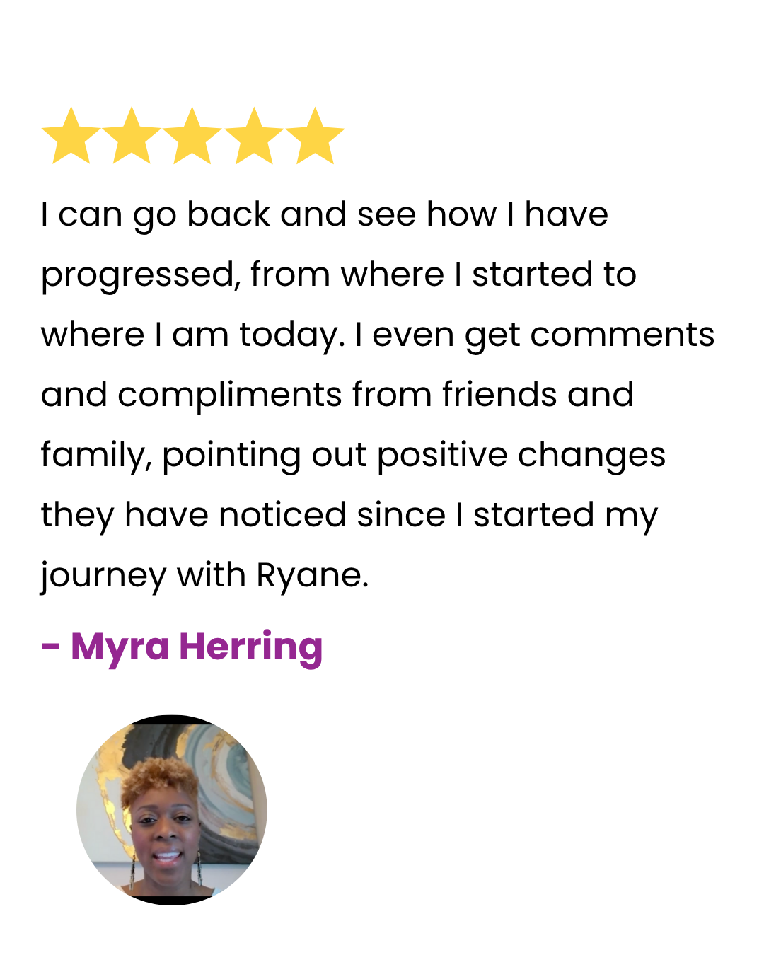 ““My biggest win with Ryane’s coaching was believing in myself enough to step out on faith and start my own business. I just closed my first client within the past two hours. That is all because of the work that I did with Ryane”