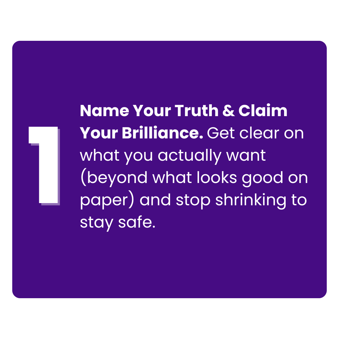 You’ll step into the fullness of your brilliance—professionally, personally, and spiritually—and lead your life with boldness, joy, and integrity.