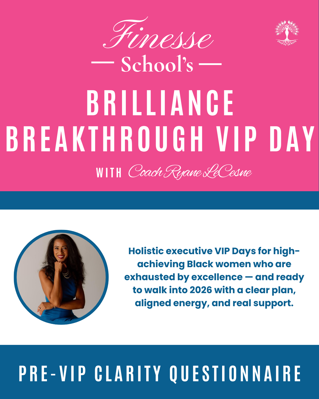 In your Brilliance Breakthrough VIP Day, we focus on all three essential tools every Black woman needs to advance with confidence and alignment—to finesse your success: